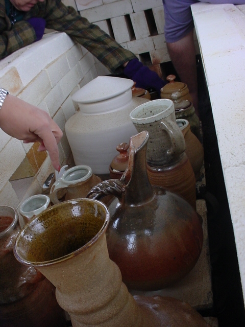 Yesterday morning we unloaded the wood kiln. The video guy was there. (Diana is documenting the process of our MFA experience. It felt weird, at first, to have a camera running every Tuesday morning, but after a while it’s easy to forget he’s there.)
