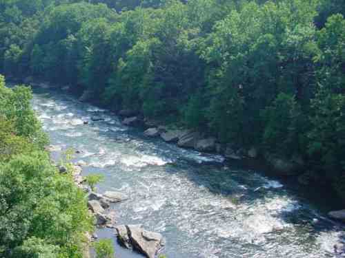 I rafted this river in college, in 1979, with my pal Nancy DeCaprio and a bunch of dorm-mates. This trip, we paddled the more family-friendly portion of the river, with just class 1 and 2 rapids. Anyway,this was the view looking down from the wooden bike bridge.