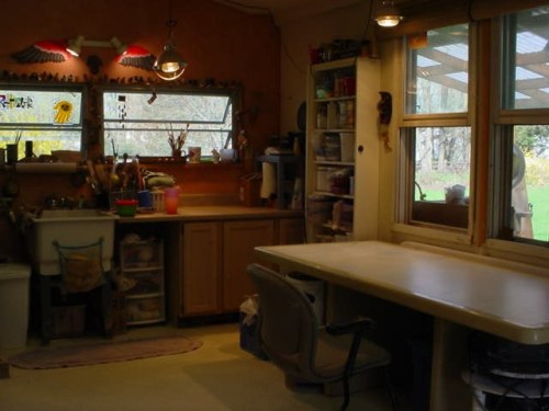 This big table used to be in a conference room. It’s heavy and white and easy to wipe down, and it hides all kinds of stuff underneath. The wheel under the right end is plugged in and ready to go, all I have to do is pull it out and then “park” it again when I am done. (My brent is on the deck outside. I’ll post those pics tomorrow when it’s light out.)
