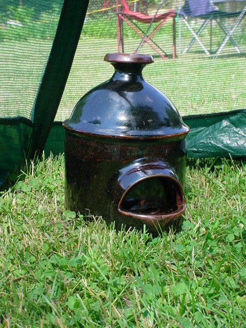 Temmoku chick waterer based on an old crockery one I found in an antiques catalog.
