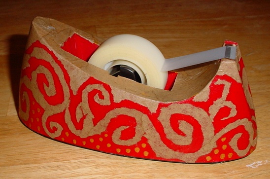 There was an ugly, yellowed, heavy plastic tape dispenser in a box of junk I bought at an auction. By the magic of art I have transformed it into an ugly RED tape dispenser, lol. Let’s call this one a learning experience, shall we?