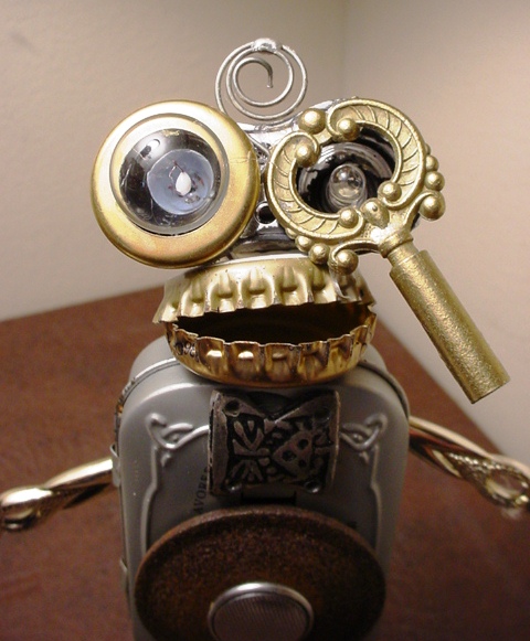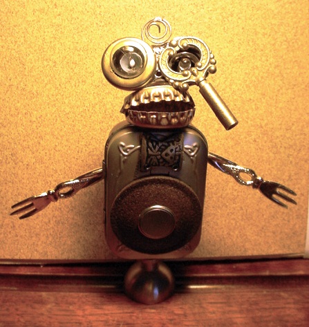 Today’s “make” is a fobot. I have lucked into an art group and we met again today in a big sunny artspace to make stuff together. I finished this little guy and started a second, but ran out of time and parts. What a great bunch of womens! Maybe I need to host the next gathering here…
