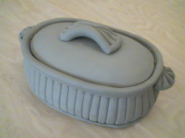 Today I demoed the extruded casserole project for my ceramics class at Owens College. Same idea, bigger form. Bad cell phone pic. Wait until you see TOMORROW’s make… I’m entering an edible book contest. I’ll photograph my entry when it’s done!