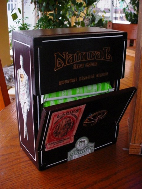3 responses to “Make 30: Steampunked cigar box tampon dispenser. Yes, really.”