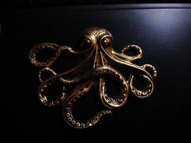 The octopus I bought as a shiny new thing and then antiqued and sanded it… really a remake more than a make.