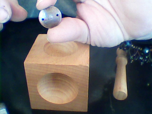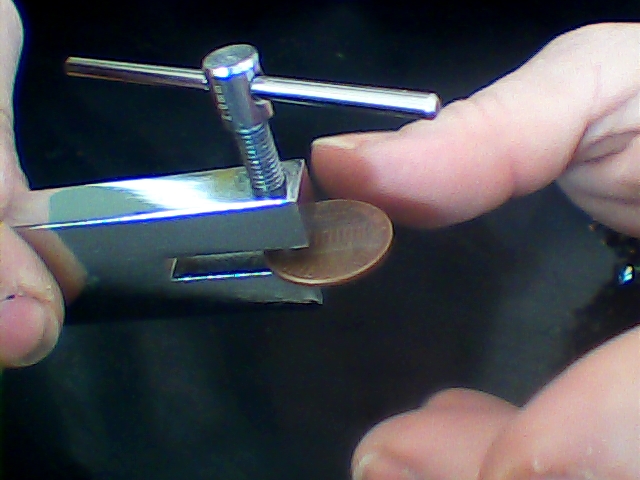 I would love to learn how to make a fast motion, hands-only tutorial for craft stuff, but for now all I can manage is a series of photos. So here’s how I make a button out of a penny.